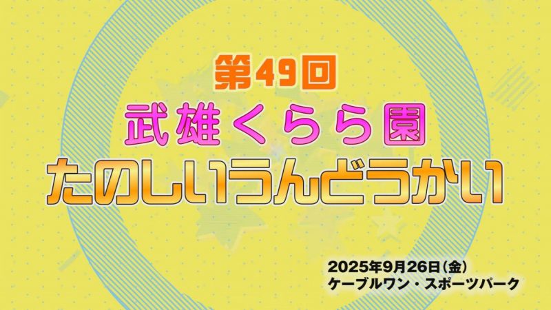 武雄くらら園たのしいうんどうかい 【放送時間】 うれしの局 10月27日(月)~10月29日(水) 6時~、10時~、14時~、18時~、21時~、深夜1時 ※27日(月)の初回の放送は...